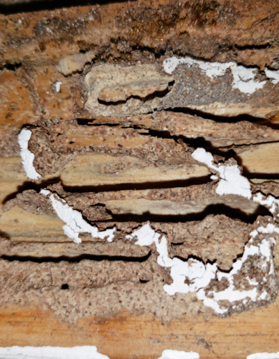 Los daños de las termitas en paredes de concreto solo son una pequeña parte del daño ocasionado en la edificación, ya que tan solo son una manifestación de su presencia. El verdadero daño es mas que nada estructural pues aprovechan pequeñas cuarteaduras que presentan con el tiempo las paredes.